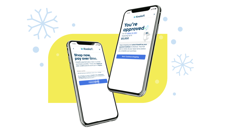 Whether it’s cozy furniture or road-trip-ready tires, Koalafi’s flexible lease-to-own payment option allows you to pay over time for everything you need to make your holiday season brighter—no credit needed.*